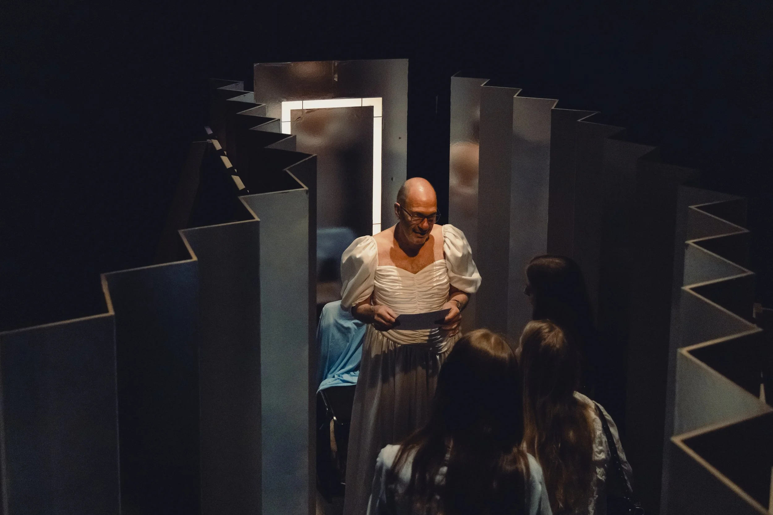 Wagners Leitmotivik wird zu sphärischer Fahrstuhlmusik – und das Labyrinth öffnet eine theatralische Kartierung von Begegnung, die im besten Fall über diese eine Stunde des Gehens, Verweilens und Hörens hinausreicht. Das Publikum wird eingeladen, Teil von interaktiven intimen Momenten zu werden, zu beobachten oder sich selbst als Elsa oder Lohengrin der Jetztzeit auszuprobieren.